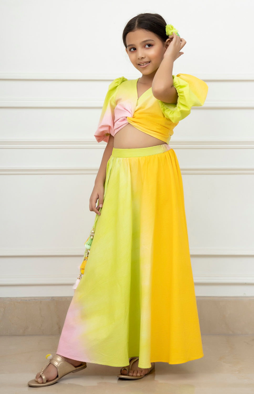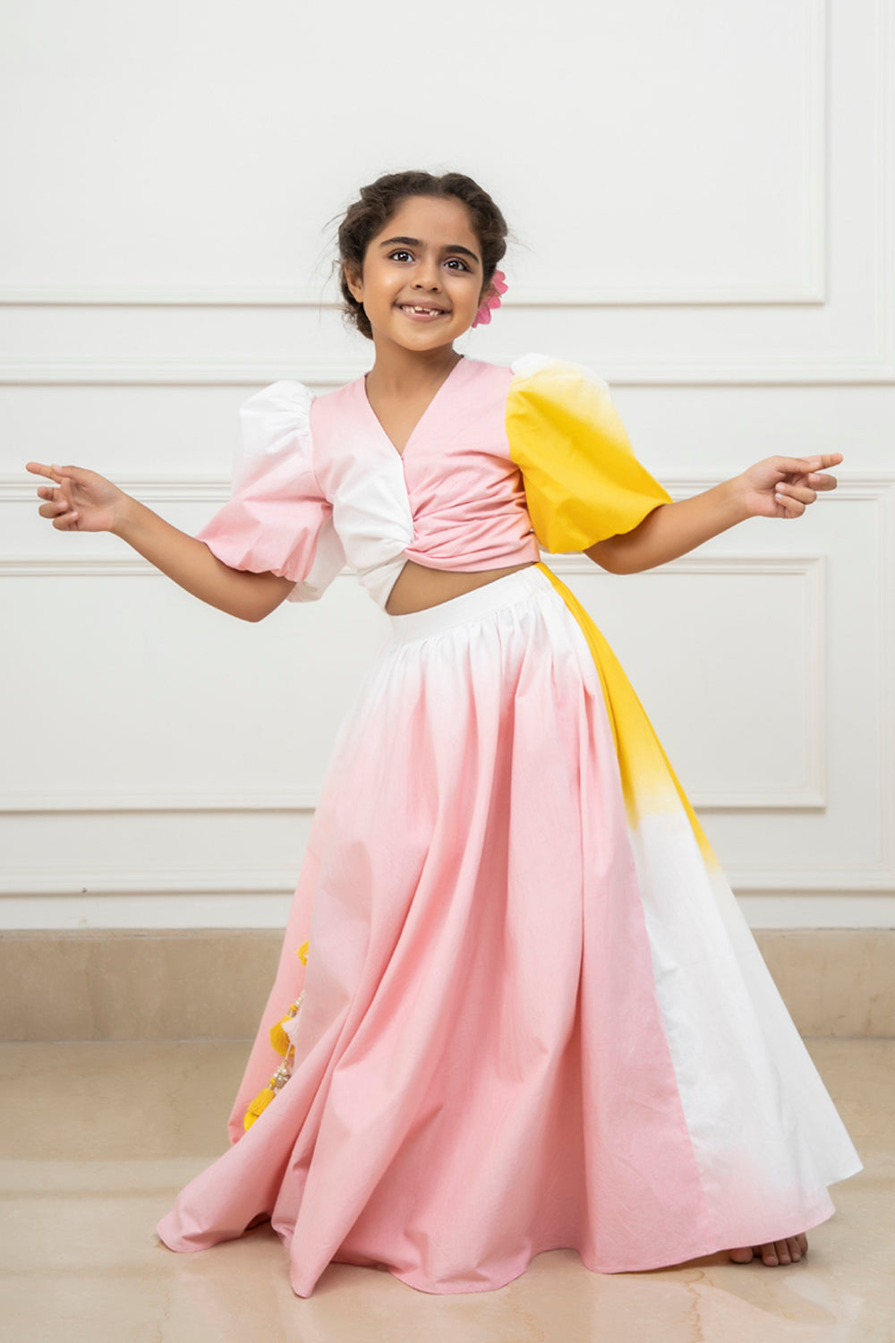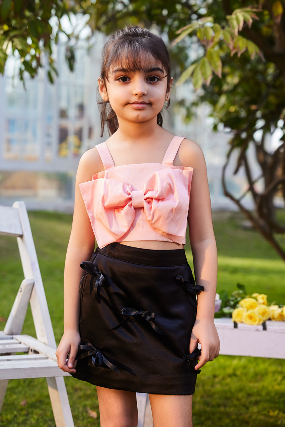 Skirt & Top Co-ord Set: The Skirt & Top Co-ord Set by PNK Isha Arora is ideal for little girls who love to make a stylish statement without compromising on comfort. The co-ord set is easy to style, and its coordinated pieces ensure a seamless look. Perfect for casual outings, brunches, or vacations, this set offers both style and ease.