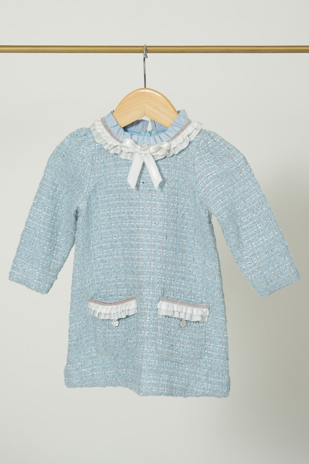 A Chic classy little ensemble for a little girl to make her feel cute and confident! it smart, comfortable, & cosy. Perfect for winter day occasions. the frill ribbon detailing around the neck and pockets, the shiny silver buttons & the silver shimmer of the lurex woven into the fabric makes it that extra luxurious and formal for any special occasions. Size customisation available.